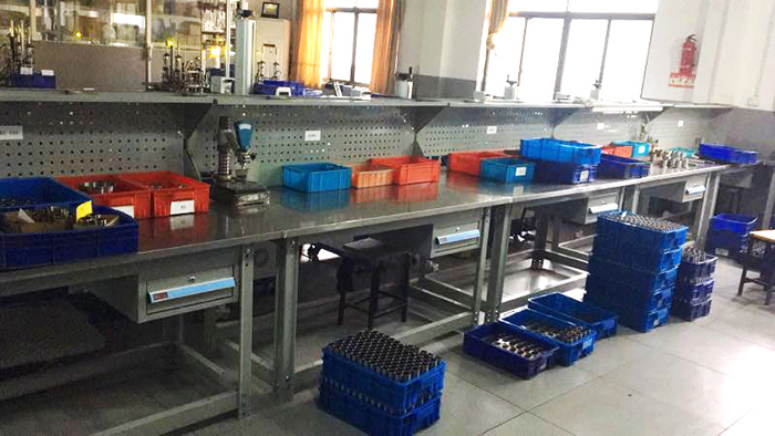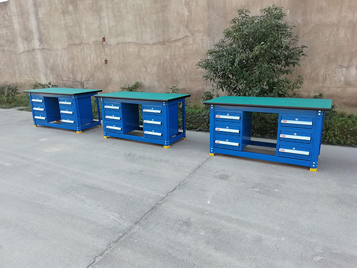 關于DTA系列工作臺的選購說明:2.桌面默認為30MM厚綠色花紋桌面。桌面基材為高壓纖維板,最表面高壓貼附2MM厚高分子復合材料,四周PVC長型密封膠條封邊,桌面耐磨耐沖擊。根據特殊需要可定做桌面表面1MM不銹鋼包邊包面或者鋼板鋪面桌面。桌面定制最大尺寸可做到長2400*寬1200MM。4.工作臺除桌面外所有鈑金表面是流水線靜電噴塑,默認顏色:藍色。另有淺灰色可供選擇。6.工作臺臺面以上背板上可以選配各種掛鉤掛件掛各種工具。工作臺價格不含掛鉤掛件。