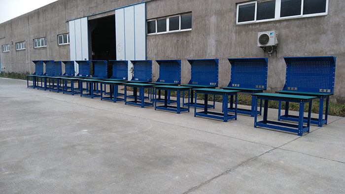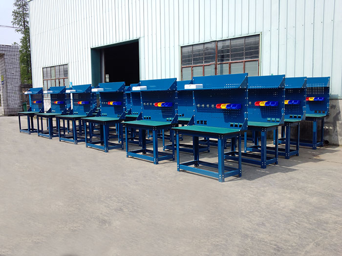 6.工作臺臺面以上背板上可以選配各種掛鉤掛件掛各種工具。工作臺價格不含掛鉤掛件。