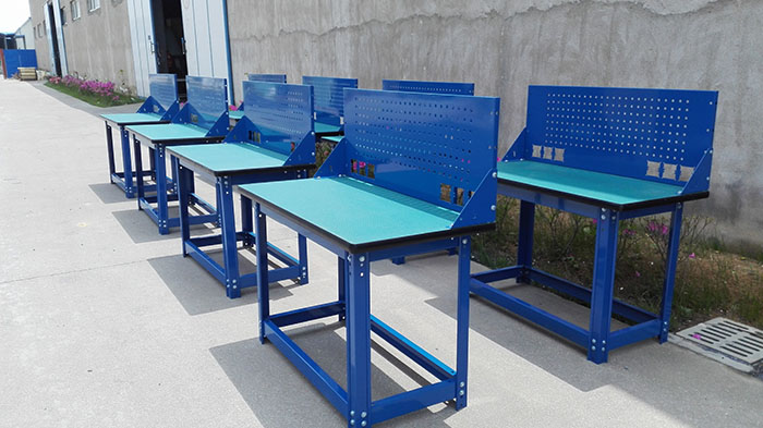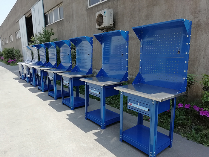 4.工作臺除桌面外所有鈑金表面是流水線靜電噴塑,默認顏色:藍色。另有淺灰色可供選擇。