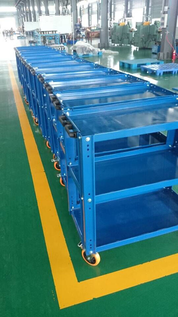 三層推車適合放置各類工具,產品,機械零件,也可作為產品巡檢用推車。具有載重量較大,外形美觀的特點。